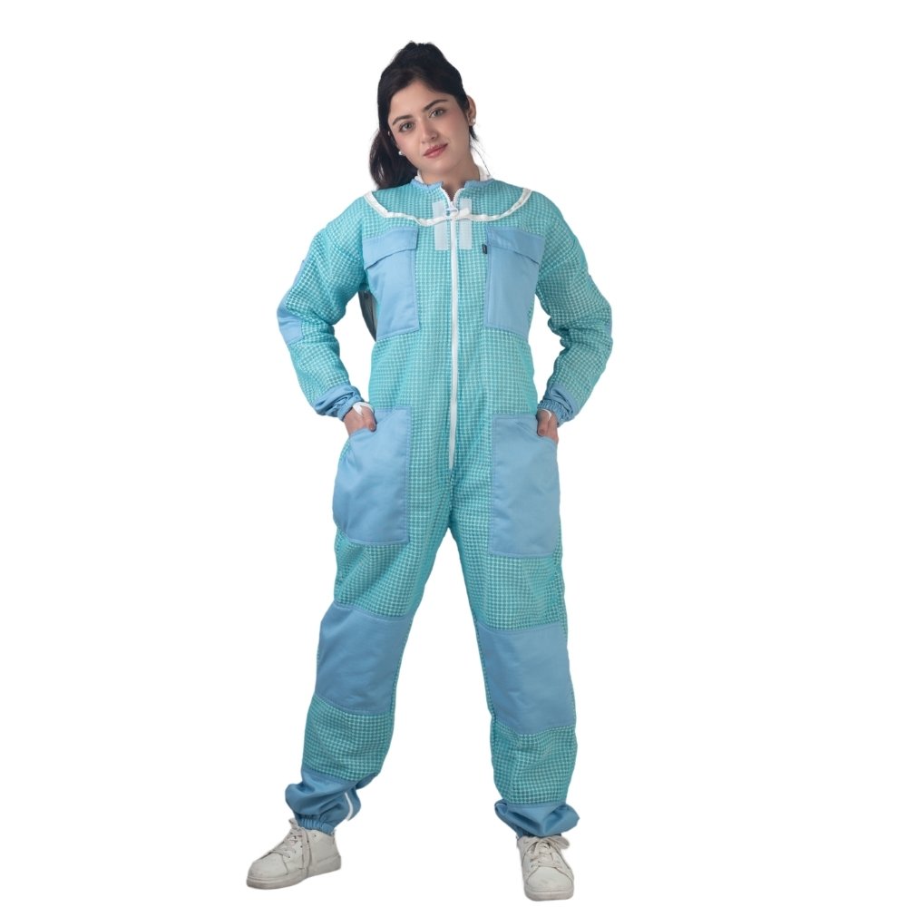 The Aeris Blue Ventilated Bee Suit is a full-body, one-piece protective suit designed for use during beekeeping activities. The suit provides complete coverage with a practical layout that supports comfort, visibility, and ease of movement while working around bees.